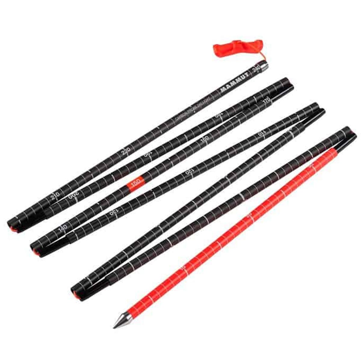高強度の伸縮式スピードロックシステムを採用した、コンパクトなカーボン製プローブ。高品質なカーボンを用いることで、剛性が高く軽量な構造を実現。手袋をしたままでも使いやすく、いざという時に素早く組み立てられる特別な設計で、効果的に埋没者を捜索することができます。また改良型360度積雪深度測定ガイドにより、常に正確な情報を入手することが可能に。プローブ下部はオレンジ色にすることで、埋没者までの距離を視覚的に確認できるようにしました。一分一秒を争う緊急事態下で使用するマムートの雪崩装備は、最も高い安全基準を満たしています。緊急対策プランが付いたカバー付属です。
