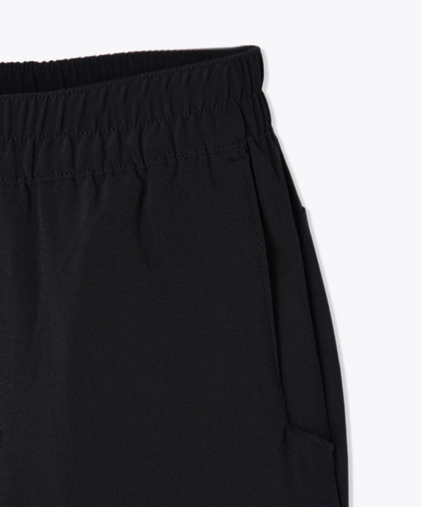 ストレッチ素材で動きやすく、小雨を弾くはっ水(撥水)機能と紫外線から肌を守るサンプロテクション機能を備え、アクティブなお子様にもぴったり。肌当たりの良いトリコット素材の裏地付きで、保温効果も抜群。着脱しやすいウエストドローコードや、裾に向かって細身のテーパードシルエットがノンストレスなはき心地を提供します。