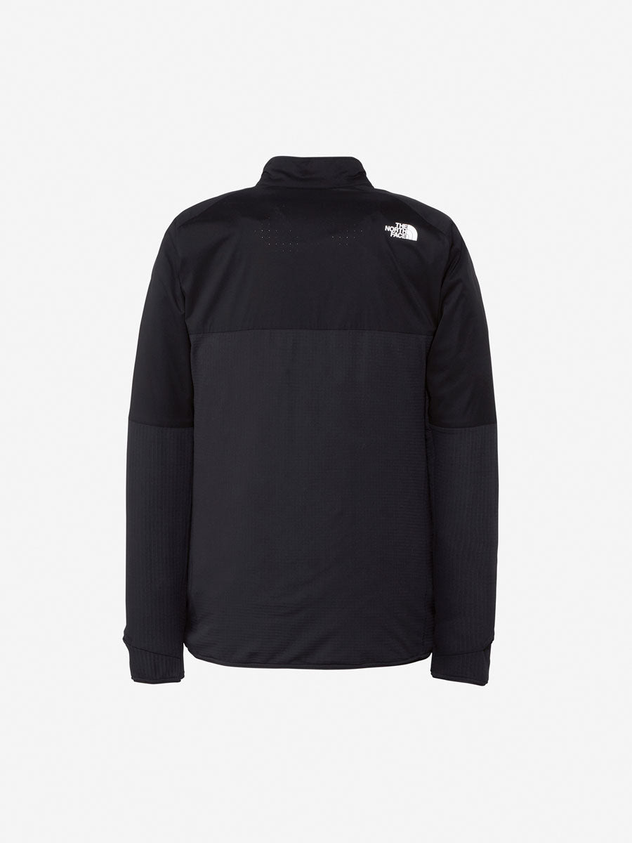 冷気を受けやすい前身頃と肩まわりには、保温力と通気性のあるグリッドフリースに、パーテックスカンタムエコを重ねた二重構造を採用。通気性を重視した背面上部にはレーザーホールのベンチレーションを設けた生地のみを、背面下部にはグリッドフリースのみを配置した構成。人間工学に基づいて、素材を適材適所にマッピングし、ランニング中でも快適な衣服内環境を保ちます。