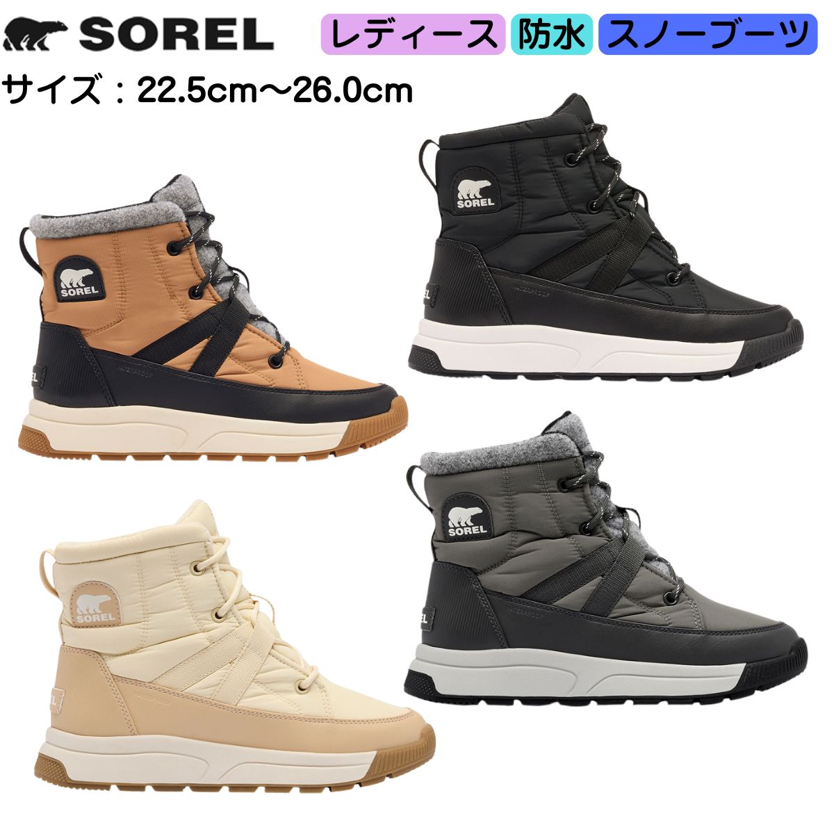 ウィットニー3 トールウォータープルーフ レディース スノーブーツ 冬靴 防滑 雪対策 防水ブーツ 滑りにくい ソレル 登山 雪道 ウィンターブーツ 防寒ブーツ あったか はっ水 撥水 ショートブーツ 仕事用 雪かき アウトドア タフ 耐久性 防水シューズ 軽量 マイナス対応 雪国 タウンユース 普段使い ミッドカット