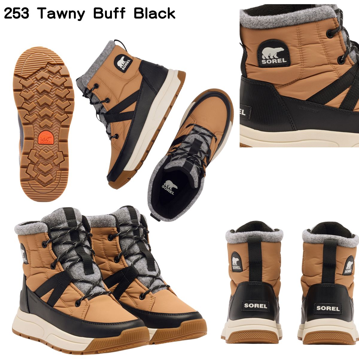 ・アッパー:防水加工されたテキスタイル&シンセティックレザーマッドガード。フェルトタン&カラー(253, 052のみ)