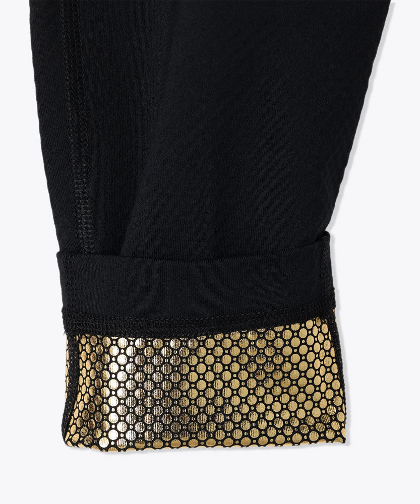 裏側に配置した金色のリフレクティブドットが、効率よく体温を反射して、瞬時に暖かさを提供します。