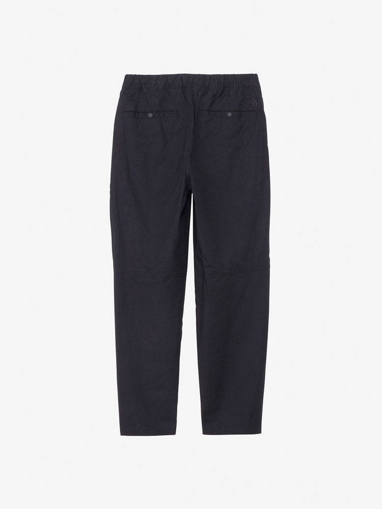 コットンにポリウレタンを混紡した生地は、天然素材のナチュラルさを持ちつつ、適度なストレッチ性で動きやすさを向上。ハイステップ時に最も伸びが必要となる内股に縫い目を入れない設計により、クライミングのダイナミックなムーブにスムーズに追従します。ワイドシルエットながら、裾のスナップボタンで裾幅を絞ることができ、足元の視界を妨げにくい仕様。左サイドにブラシホルダーを配置。