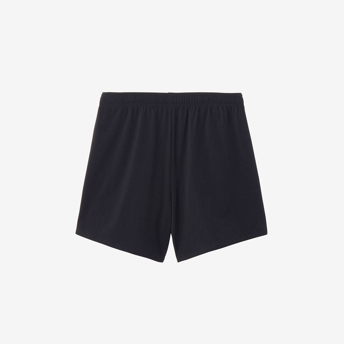 股下は、ひざ上丈の12.9cm(Lサイズ)。裾脇は足上げをしやすい裾スリット仕様です。ウエスト回りはスピンドル仕様で、フィット感をスムーズに調整できます。日々のトレーニングシーンだけではなく、さまざまなアクティビティでマルチパーパスに活用できるシンプルなデザインのアイテムです。