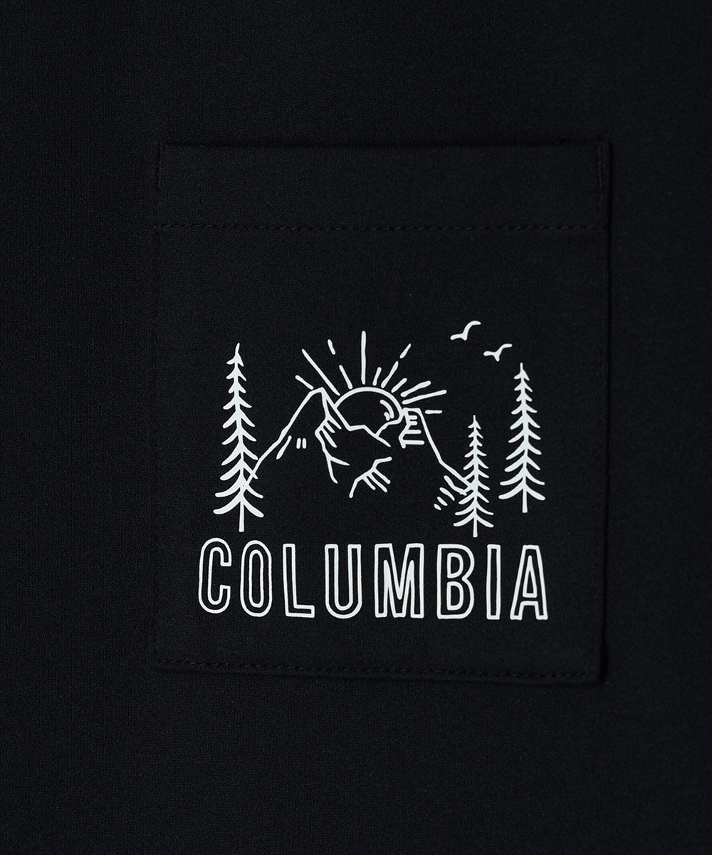 左胸ポケットは、コロンビアらしい自然の風景をテーマとしたグラフィックプリント、また左袖にブランドロゴ刺繍を配置することで、シンプルながらも存在感のあるデザインに仕上げました。