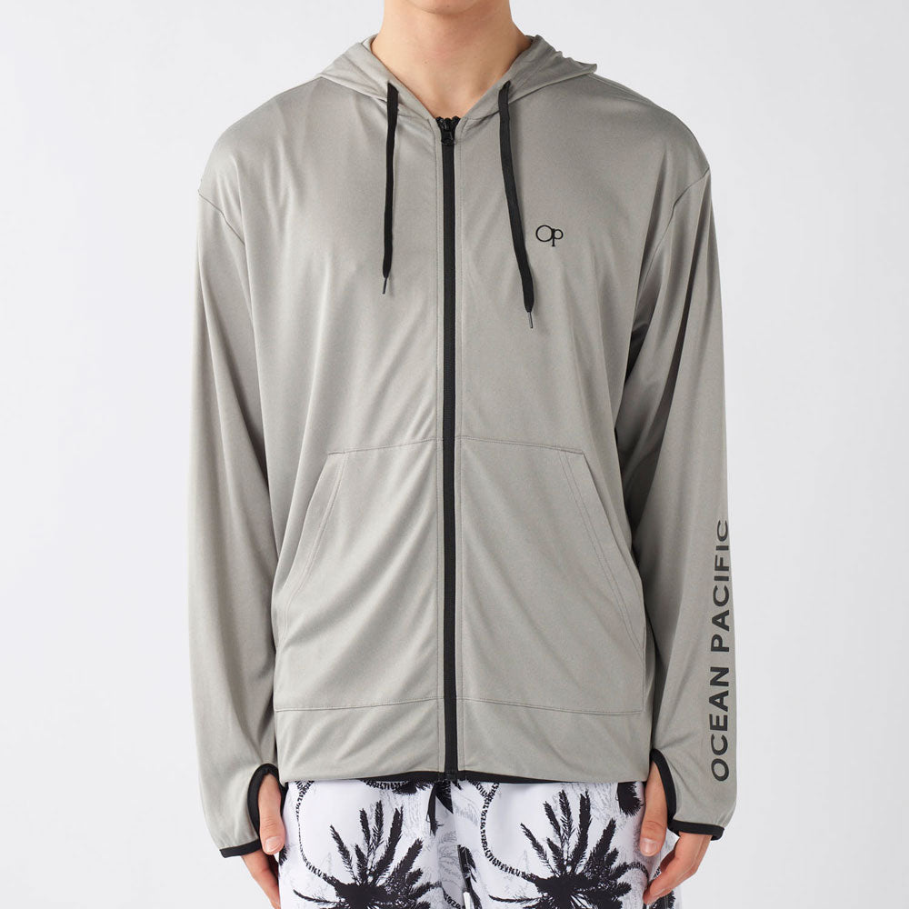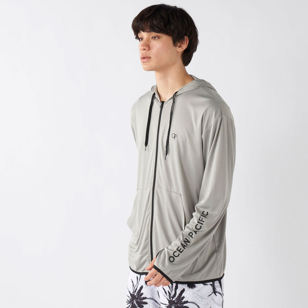 水陸両用で使えるシンプルなデザインのラッシュガードパーカー。