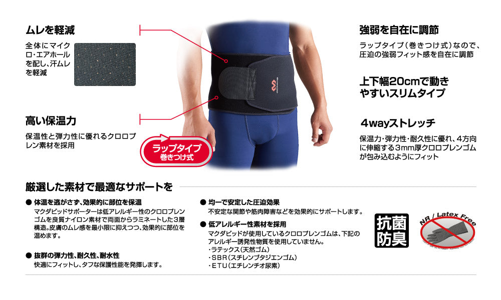 ●ラップタイプ(巻きつけ式)なので圧迫の強弱やフィット感を自在に調節可能