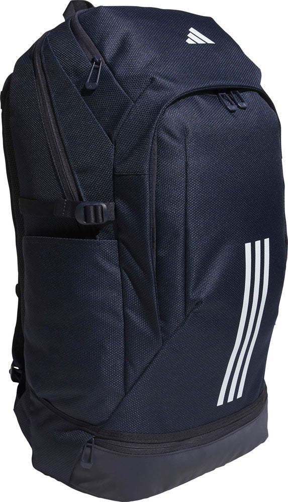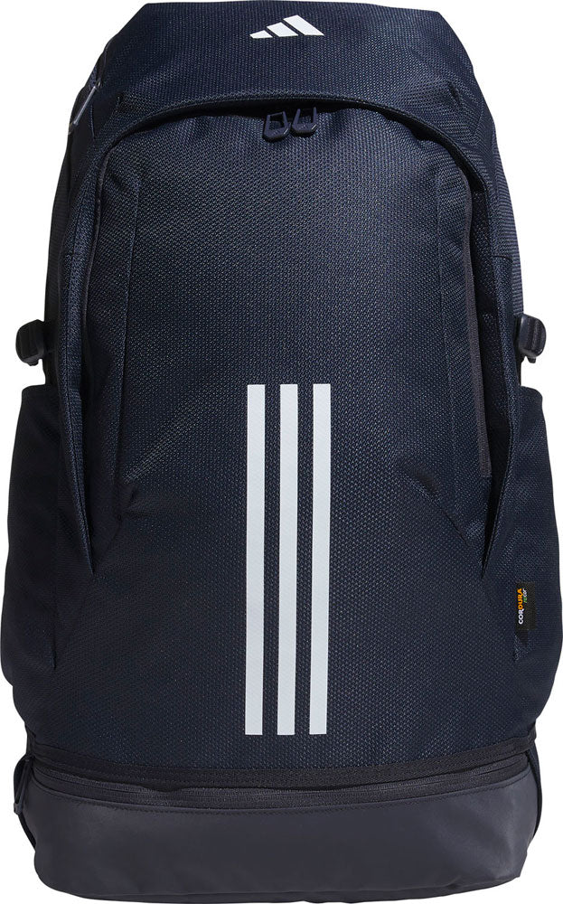 <アスリート・部活生のための耐久性に優れたバックシリーズ、EP/Syst.(イーピーエス)。>耐久性に優れたCORDURA(R)re/corファブリック(リサイクルポリエステル)を採用したバックパック。トップ、メイン、ボトムの3コンパートメントに分かれており、またメインオープニングが大きくシューズ、ウェア、ギアなどを簡単にパッキング可能。背面のエアメッシュパネルとLOADSPRINGショルダハーネスによる衝撃吸収により、長時間快適に持ち運ぶことができる。
