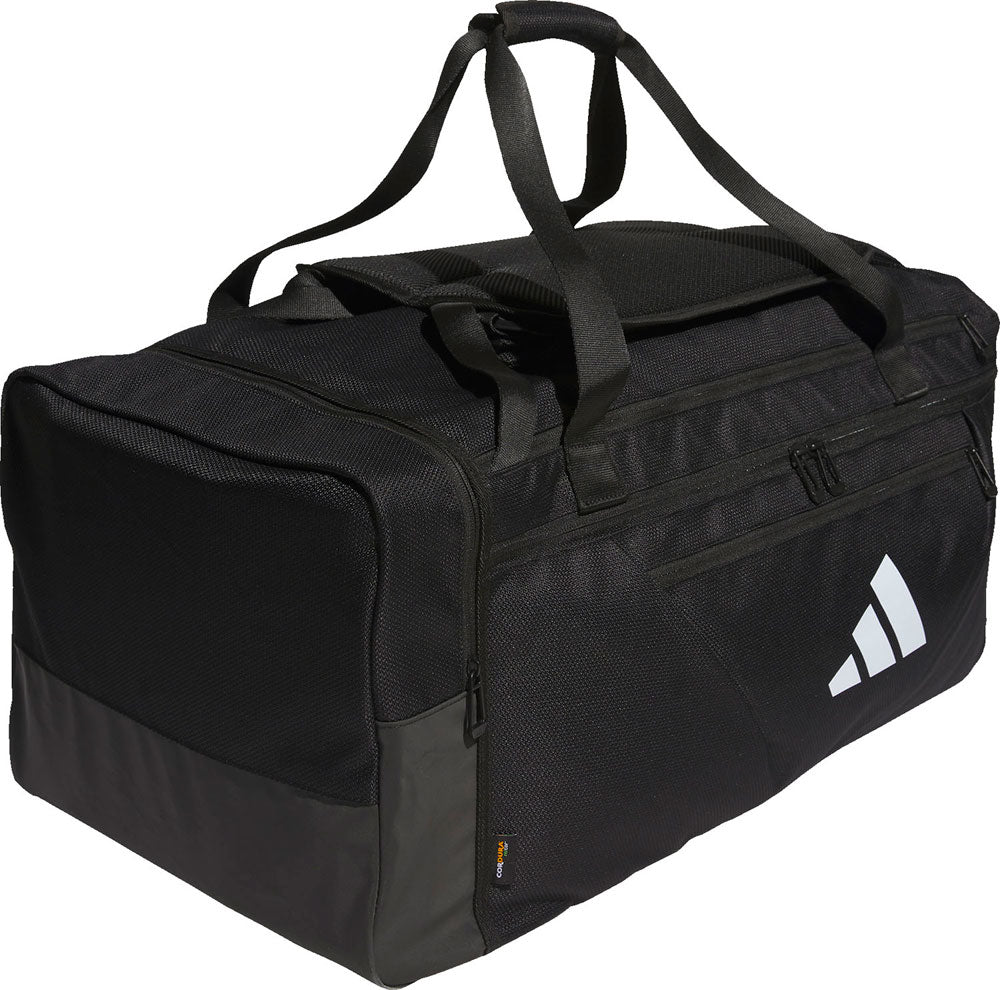 耐久性に優れたCORDURA(R) re/cor ファブリック (リサイクルポリエステル)、バックパックとしても使用可能なダッフルバッグ、フロントにジップポケット/内側にメッシュジップポケット、外からアクセス可能なシューズコンパートメント、背面にランドリーポケット