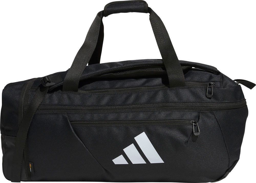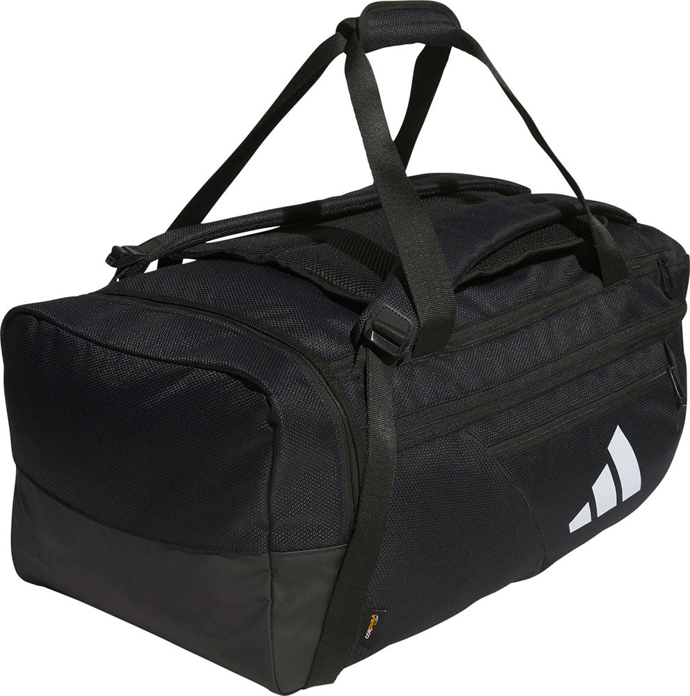 耐久性に優れたCORDURA(R) re/cor ファブリック (リサイクルポリエステル)、バックパックとしても使用可能なダッフルバッグ、フロントにジップポケット、内側にメッシュジップポケット、外からアクセス可能なシューズコンパートメント、背面にランドリーポケット