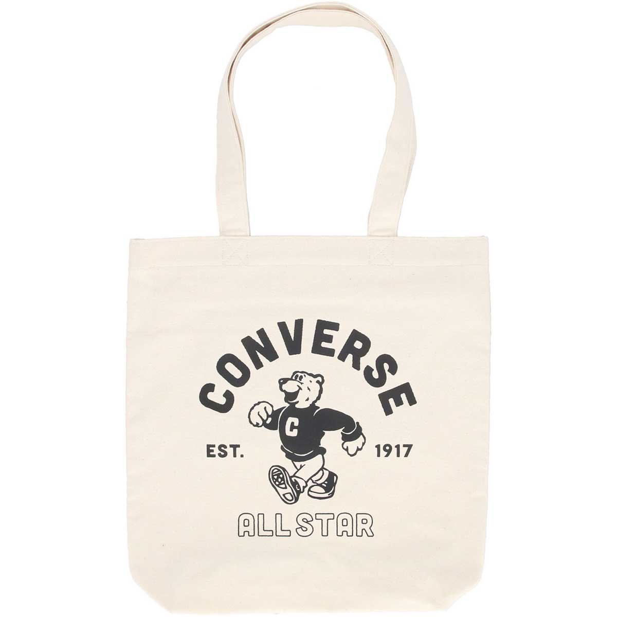 色落ちしにくい綿素材のトートバッグ。天ファスナー付。コンバースベアのデザインが目を引きます。