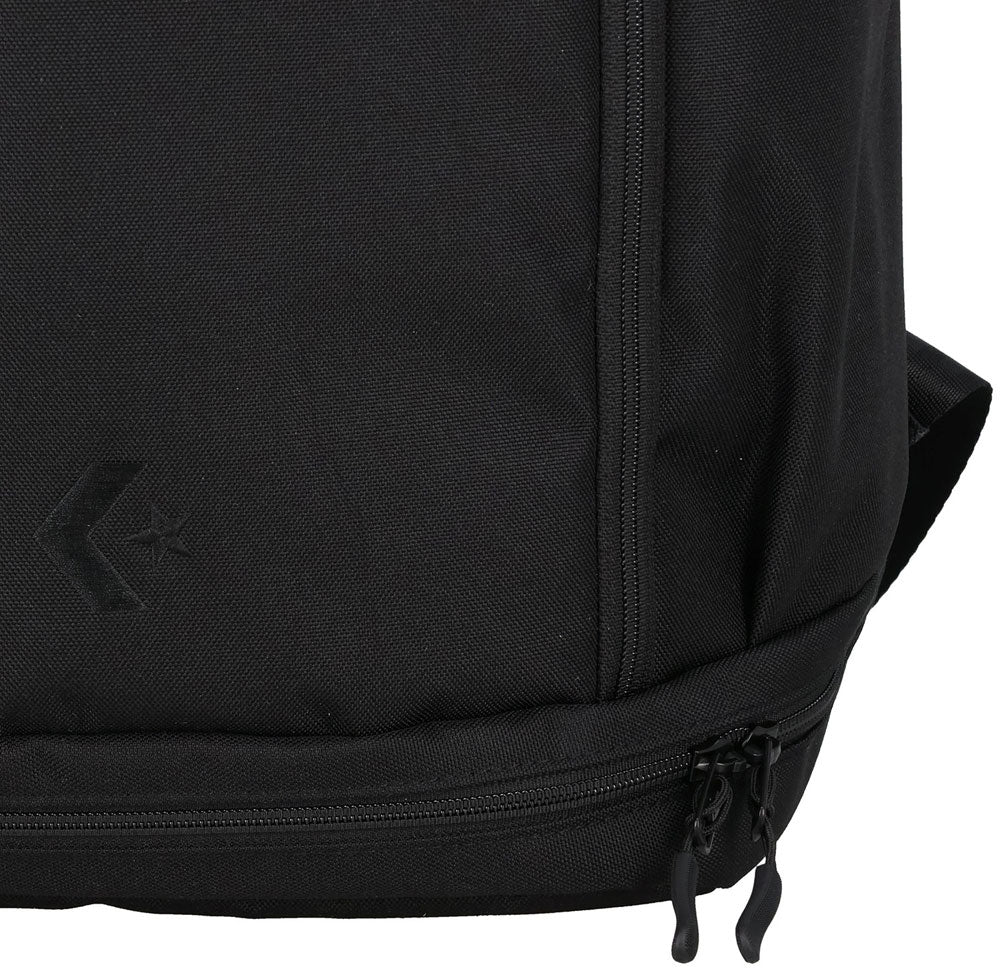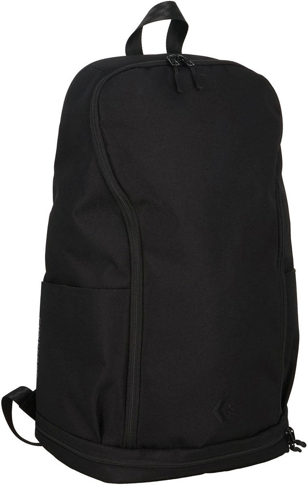 コンバースの28L収納のバックパック。開口部が広く、収納しやすい仕様。PC収納ポケット内装。底部のスペースにはシューズなどの汚れ物も分けて収納することが可能。