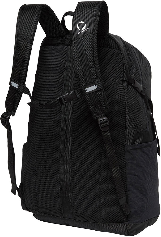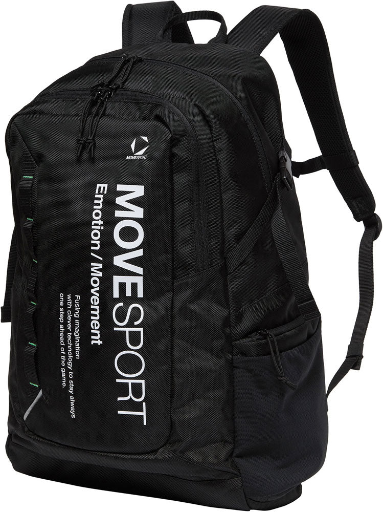 本体生地に耐水性のある1680Dのポリエステル素材を採用した総容量40Lのバックパックです。あまり荷物を入れない時は、両サイドのベルトで容量の調節が可能で、大容量でありながら、移動時に邪魔にならないようにコンパクトに見えるデザインにこだわりました。背面はクッションがあり、メッシュ素材を採用することで、快適な背負い心地になる設計にしています。シューズ収納スペースは使用しないときはメインルームを大きく使える2WAYデザインに。メインルームにはPCスリーブが付いています。キーフック付きの前ポケットや、両サイドにのメッシュポケットなど充実の収納力です。肩にフィットする形状のショルダーハーネス構造で、チェストベルトを装着すればより安定したフィット感で着用できます。ショルダーハーネス部の両サイドに、リフレクターベルトを搭載しています。