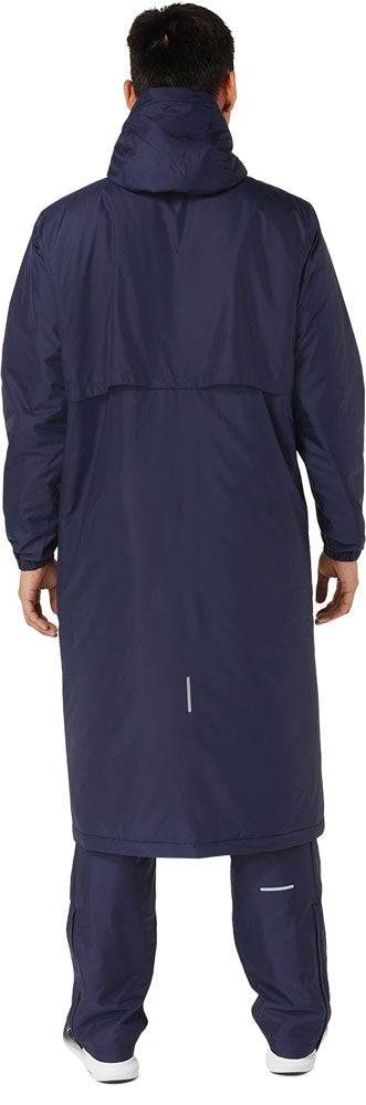 ・TEAM COLLECTIONシリーズ。ワンポイントデザインの中わたロングコート。Lサイズで着丈が約121cmのロング丈で、背ベンチレーション仕様と再帰反射ディテール付き。