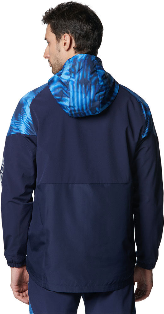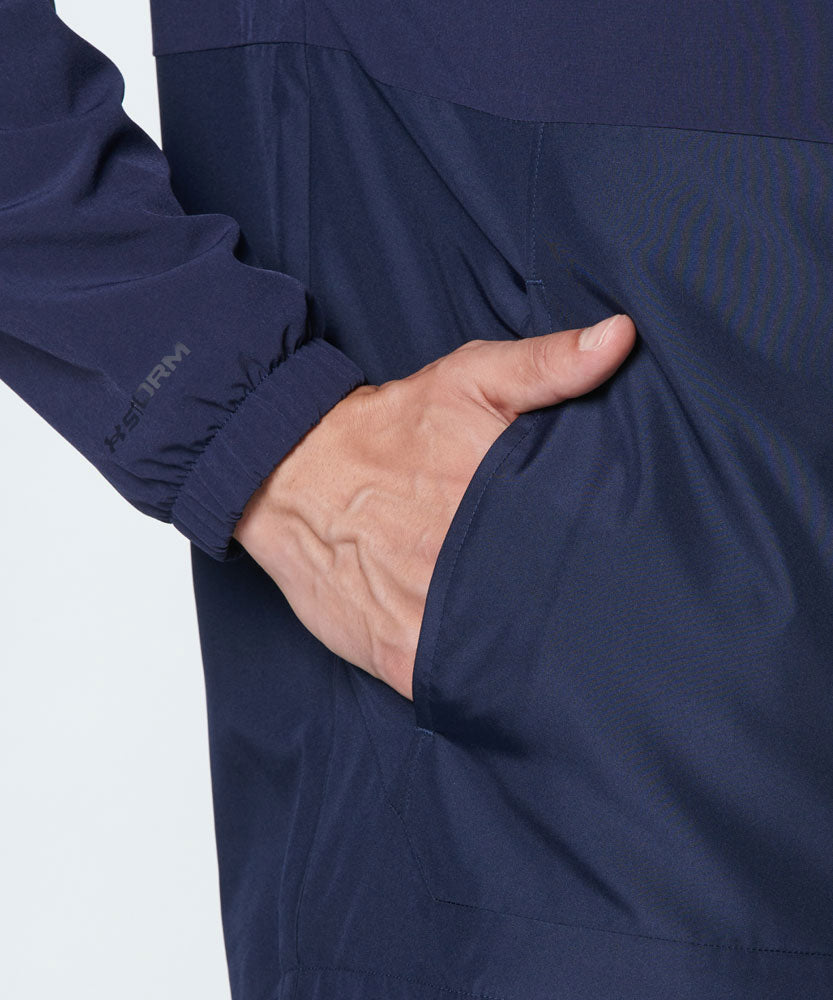裏地の起毛トリコットを使用したウーブンジャケットで、暖かさをクールに纏う。撥水加工を施したファブリックにより悪天候下でもドライで快適な状態を保つ「ストーム」と、どんなシーンでも身体の動きをスムーズにする4wayストレッチを採用。両サイドにポケットを備える。