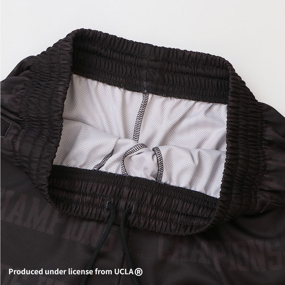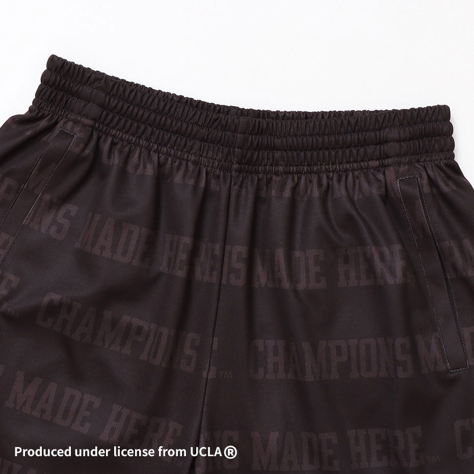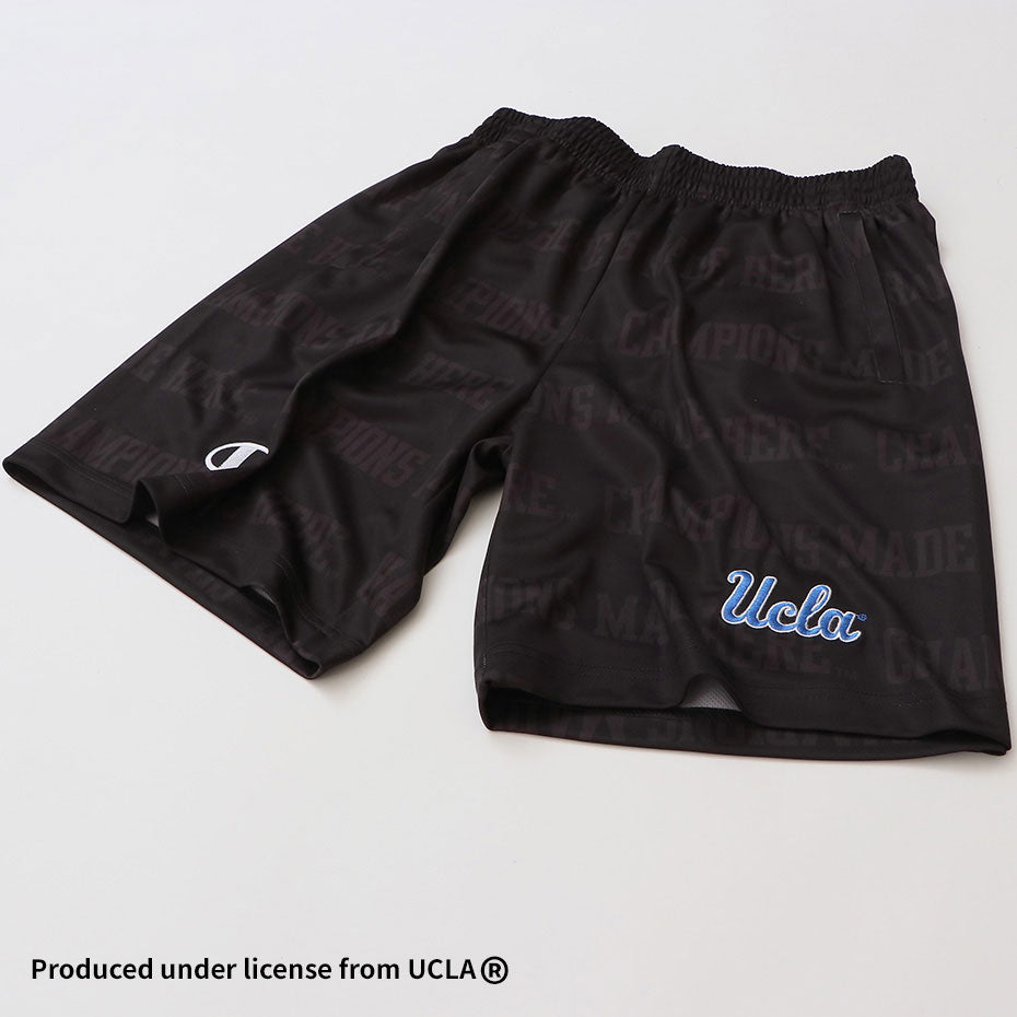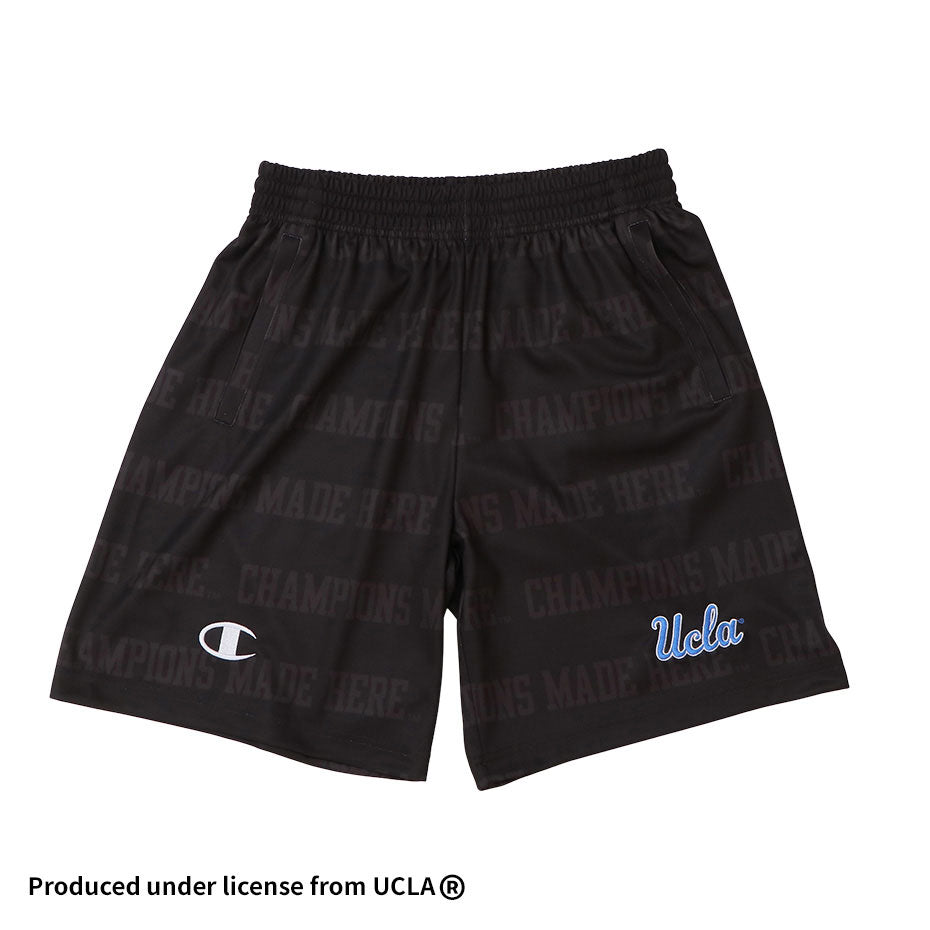 環境に配慮されたリサイクルポリエステル100%のストレッチ性と吸汗速乾機能を兼ね備えた素材に、汗によるニオイの発生をアクティブに抑制し続ける抗菌・防臭機能「C ODORLESS® by Polygiene」加工を行った生地を使用したショーツです。「CHAMPIONS MADE HERE」を昇華プリントで全面に入れ、左裾には「UCLA(ユーシーエルエー/カリフォルニア大学ロサンゼルス校)」のロゴ、右裾にCロゴ、後ろ側にBマーク(BRUINS)を刺繍しています。トレンドのショート丈(Lサイズ 総丈50cm)で、両サイドにポケット付き。「UCLA」は、1919年に設立されたアメリカの公立大学です。芸術、科学、文学など人類の成長に様々な視点で貢献し、多くの学者、著名人を誕生させています。また、UCLAのスポーツチームはBRUINS(ブルーインズ)と呼ばれ、多くのプロアスリートを輩出しています。
