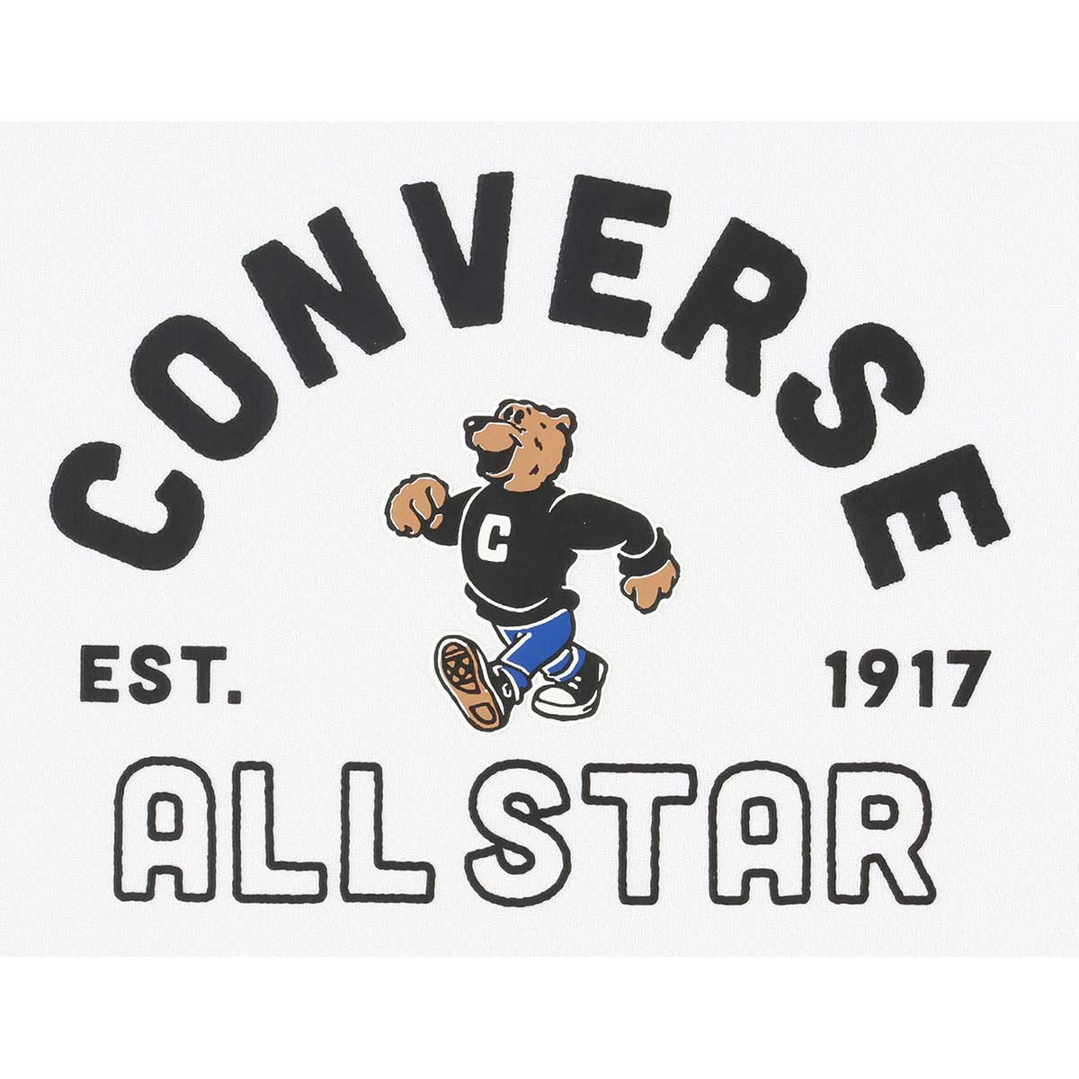 コンバースベアのグラフィックTシャツ。柔らかな肌触りに吸汗速乾を兼ね揃えたスポーツ向けアイテムです。