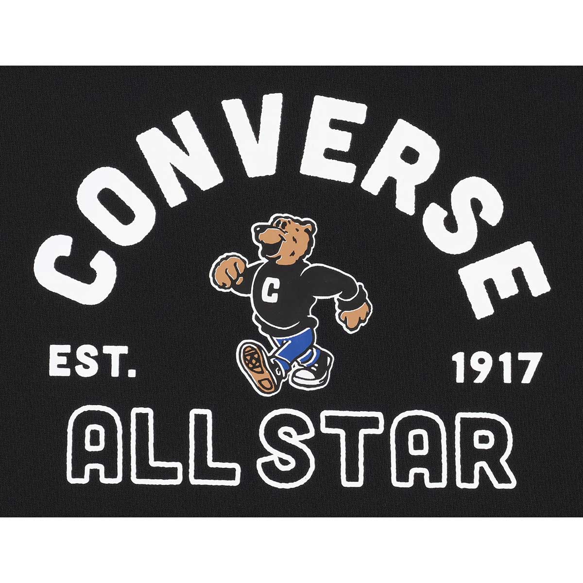 コンバースベアのグラフィックTシャツ。柔らかな肌触りに吸汗速乾を兼ね揃えたスポーツ向けアイテムです。