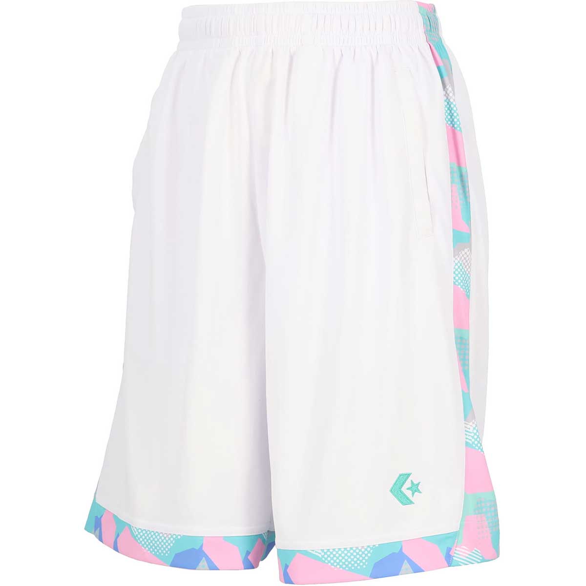 脇と裾にポップな幾何学模様が特徴のプラクティスパンツ。柔らかな肌触りに吸汗速乾を兼ね揃えたスポーツ向けアイテムです。