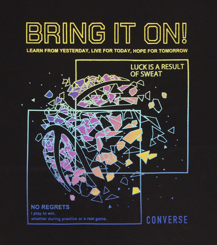 コンバースのロンT。鮮やかなグラデーションを使用したワイヤーフレームのバスケットボールデザイン。柔らかな肌触りに吸汗速乾を兼ね揃えたスポーツ向けアイテム。