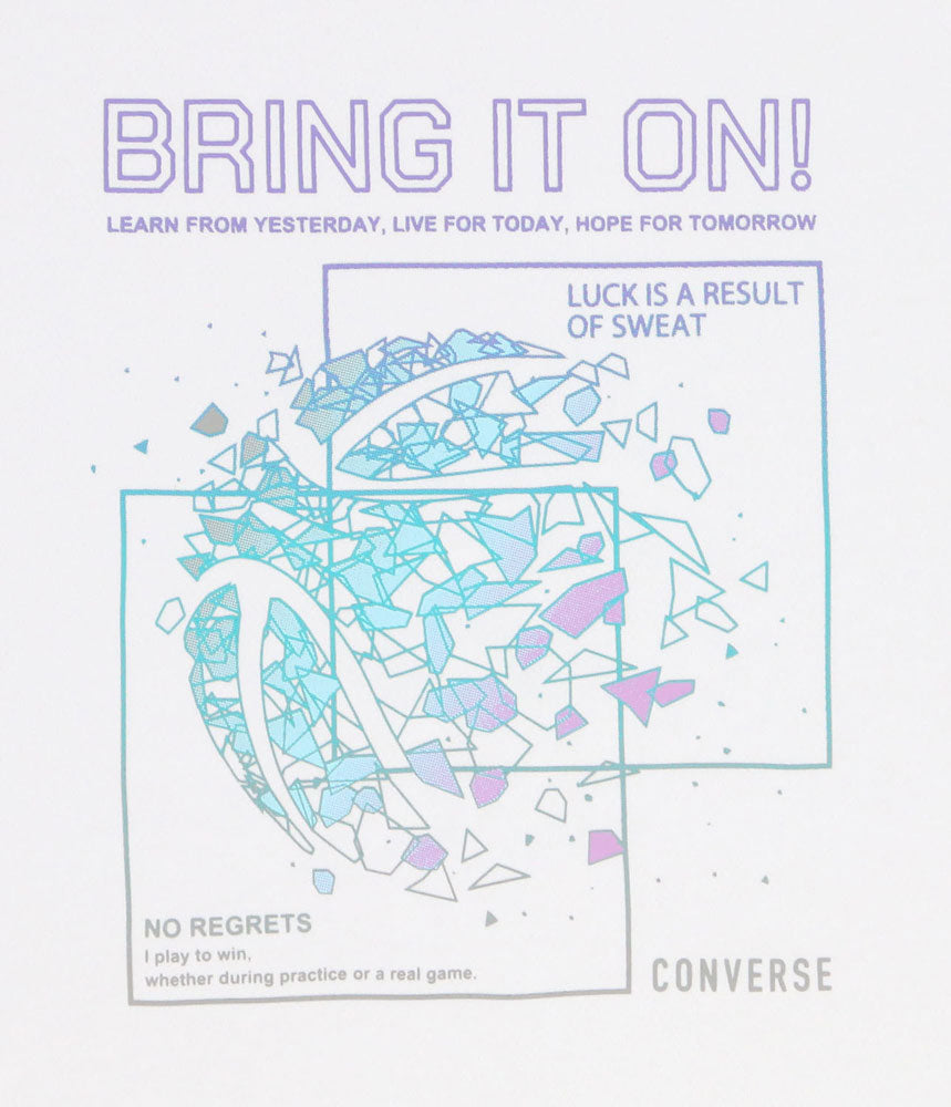 コンバースのジュニアロンT。鮮やかなグラデーションを使用したワイヤーフレームのバスケットボールデザイン。柔らかな肌触りに吸汗速乾を兼ね揃えたスポーツ向けアイテム。
