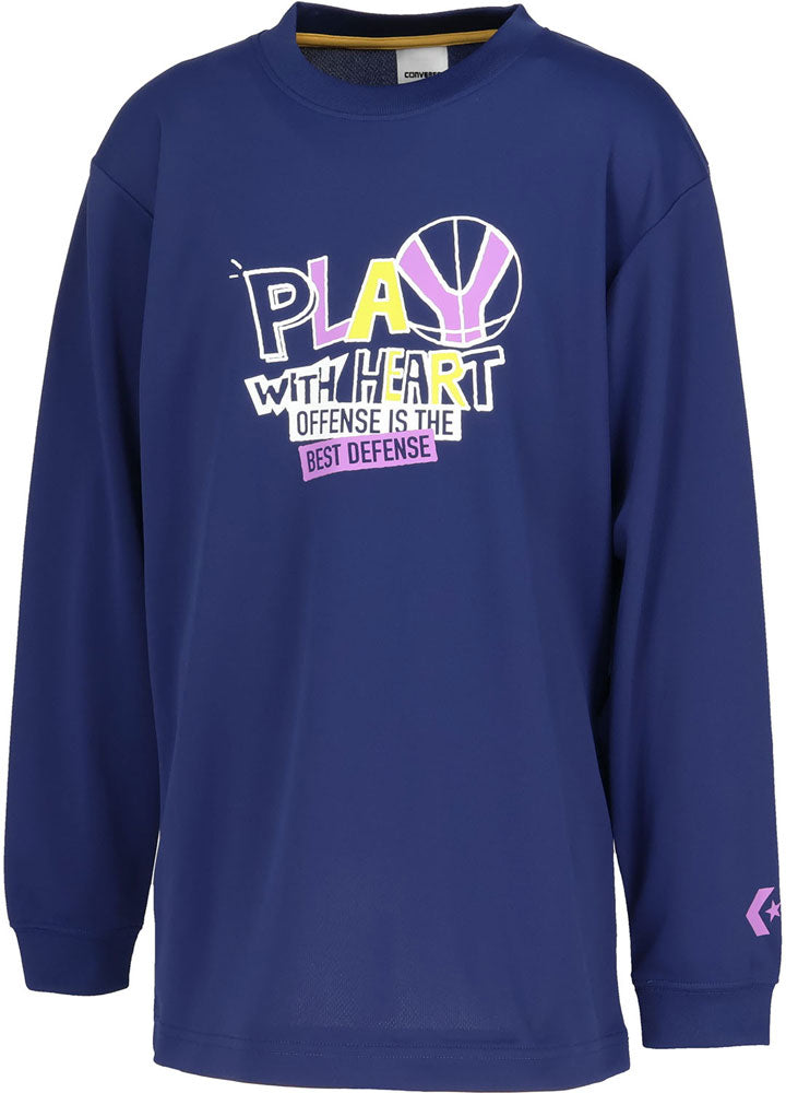 コンバースのジュニアロンT。バスケットのモチーフをタイポグラフィで表現。柔らかな肌触りに吸汗速乾を兼ね揃えたスポーツ向けアイテム。
