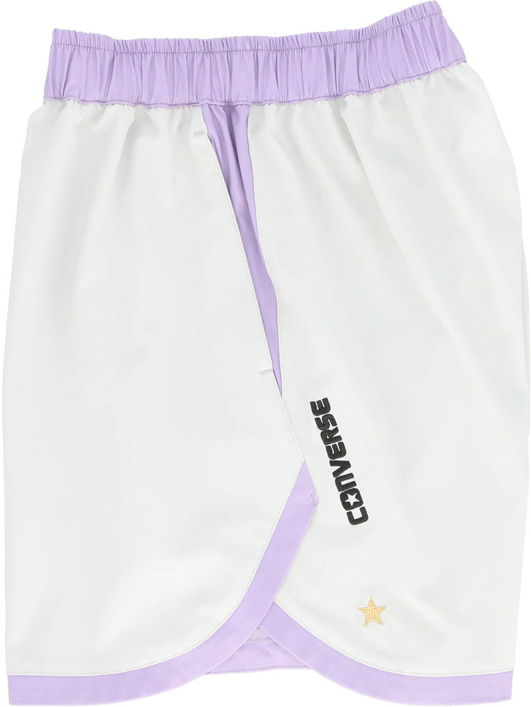 コンバースのトップライン、ゴールドシリーズ。撥水機能を持つ布帛素材を使用した、ストレッチ性のあるバスパン。軽量で軽く、ウエスト、裾、脇のカラー切替がポイント。
