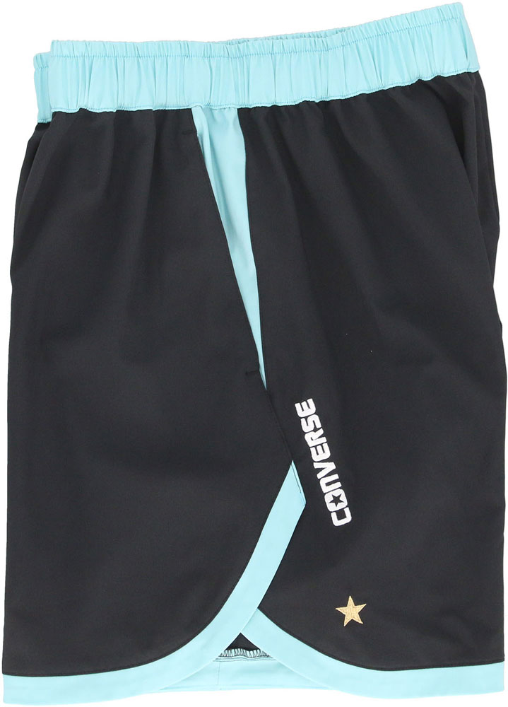 コンバースのトップライン、ゴールドシリーズ。撥水機能を持つ布帛素材を使用した、ストレッチ性のあるバスパン。軽量で軽く、ウエスト、裾、脇のカラー切替がポイント。