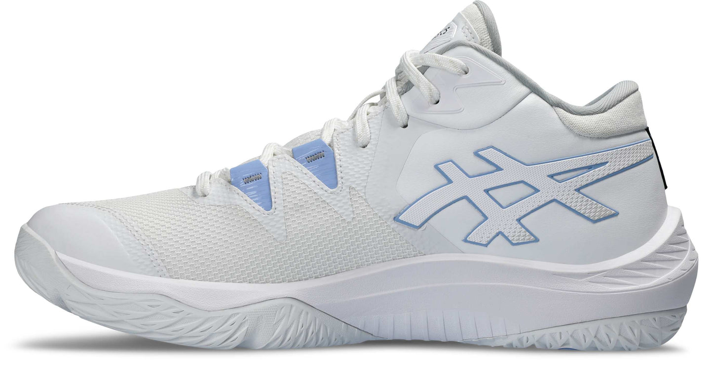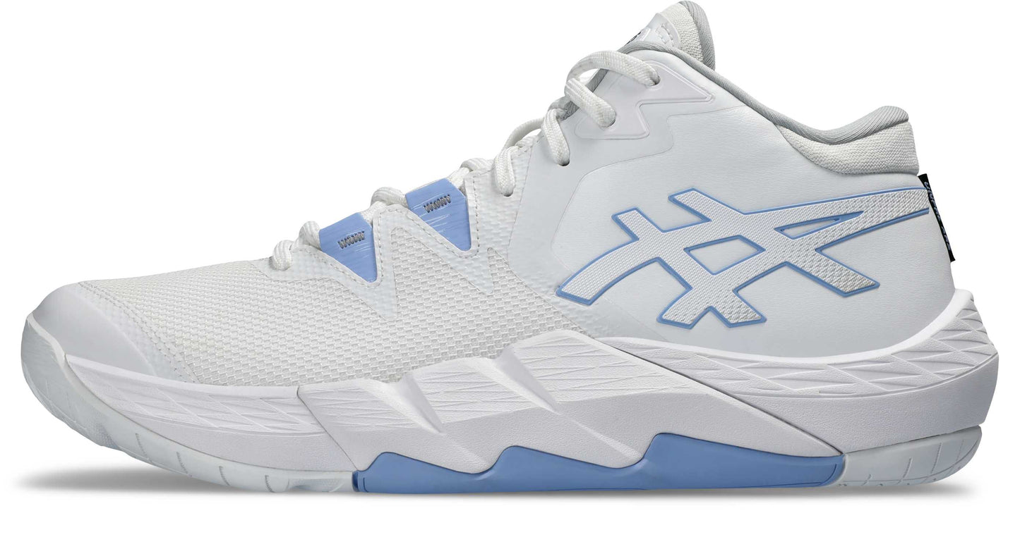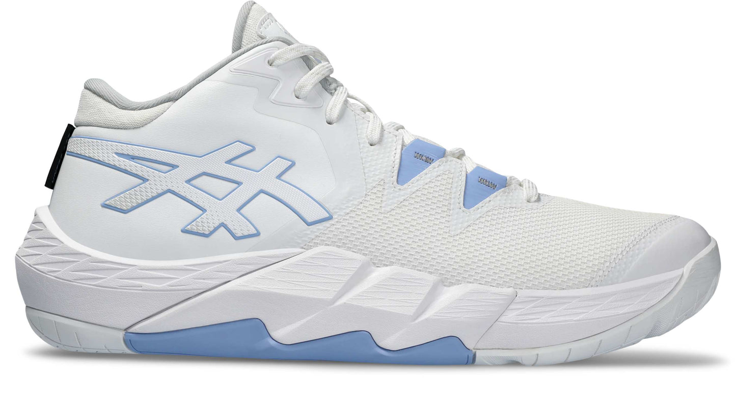 サイドに設置されたウォールがステップ時に壁となり横方向へのブレを抑制. フィジカルにすぐれたプレーヤーの力強いステップをサポート. アウターソールはフラットな構造かつ、前モデルよりもつま先部分の反りを緩やかに設計し、安定性を追求. またX型の屈曲溝がステップ時の足の動きにしっかりとシューズを追随させる. 安定性やサポート性を追求しながらも、シューズ全体の軽量性を追求.