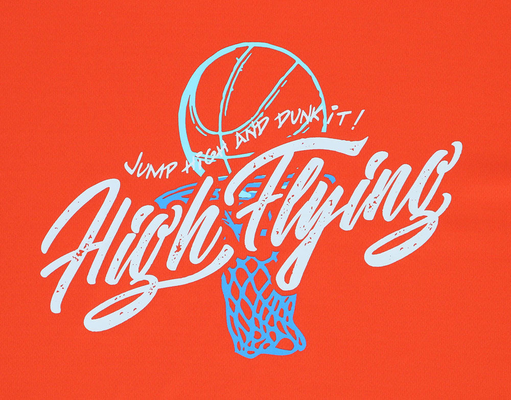レトロな筆記体のフォントが特徴のバスケT。柔らかな肌触りに吸汗速乾を兼ね揃えたスポーツ向けアイテムです。