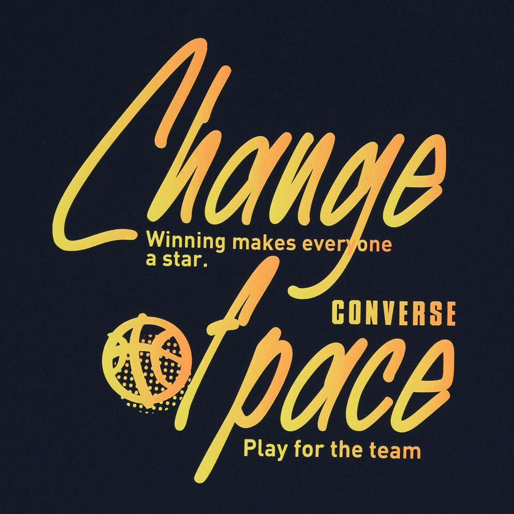 バスケットボール用語を動きのある文字で大胆にグラデーションで表現したTシャツ。柔らかな肌触りに吸汗速乾を兼ね揃えたスポーツ向けアイテムです。