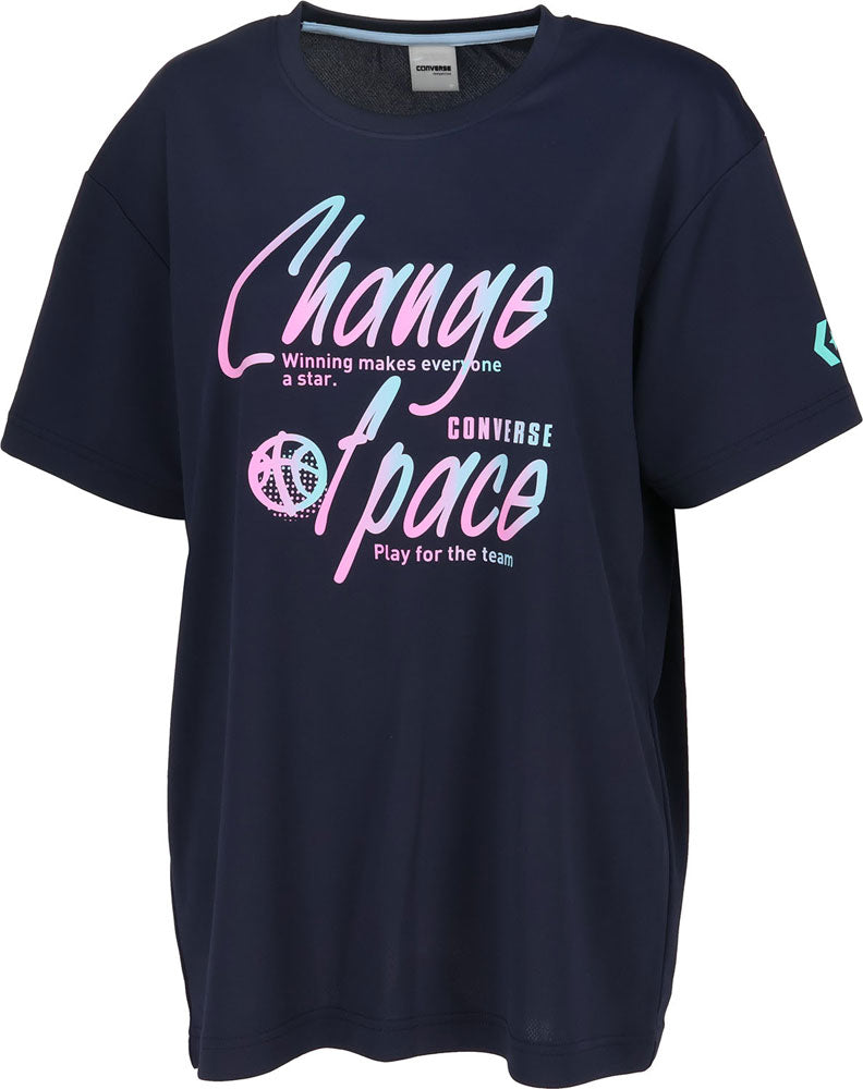 バスケットボール用語を動きのある文字で大胆にグラデーションで表現したTシャツ。柔らかな肌触りに吸汗速乾を兼ね揃えたスポーツ向けアイテムです。