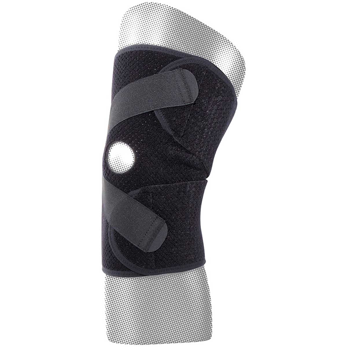 オープンタイプで装着が簡単。さらに V 字ベルトでひざ関節周囲をしっかりサポート。フィット感・固定力を調整可能。通気性抜群でムレにくく、抗菌加工で衛生的。立体設計カットでひざに自然にフィット。ひざ関節の安定やけが予防に。スポーツ・日常での使用に最適。