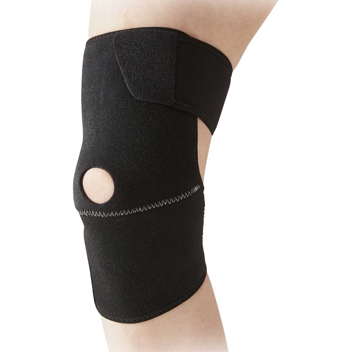 上下のストラップでひざのねじれを制御。伸縮ストラップがひざの内側の縫工筋と、ひざの外側の腸脛靱帯を抑えます。ひざ裏はオープン構造で、ひざの屈曲が容易に。