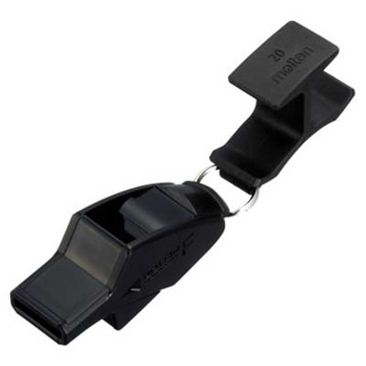 サッカー審判員用ホイッスル。瞬時に構えられるフリップグリップ付き。