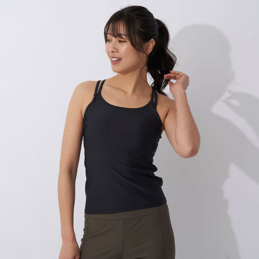 肩紐が落ちてくることのないバッククロス仕様でエクササイズに集中できます。