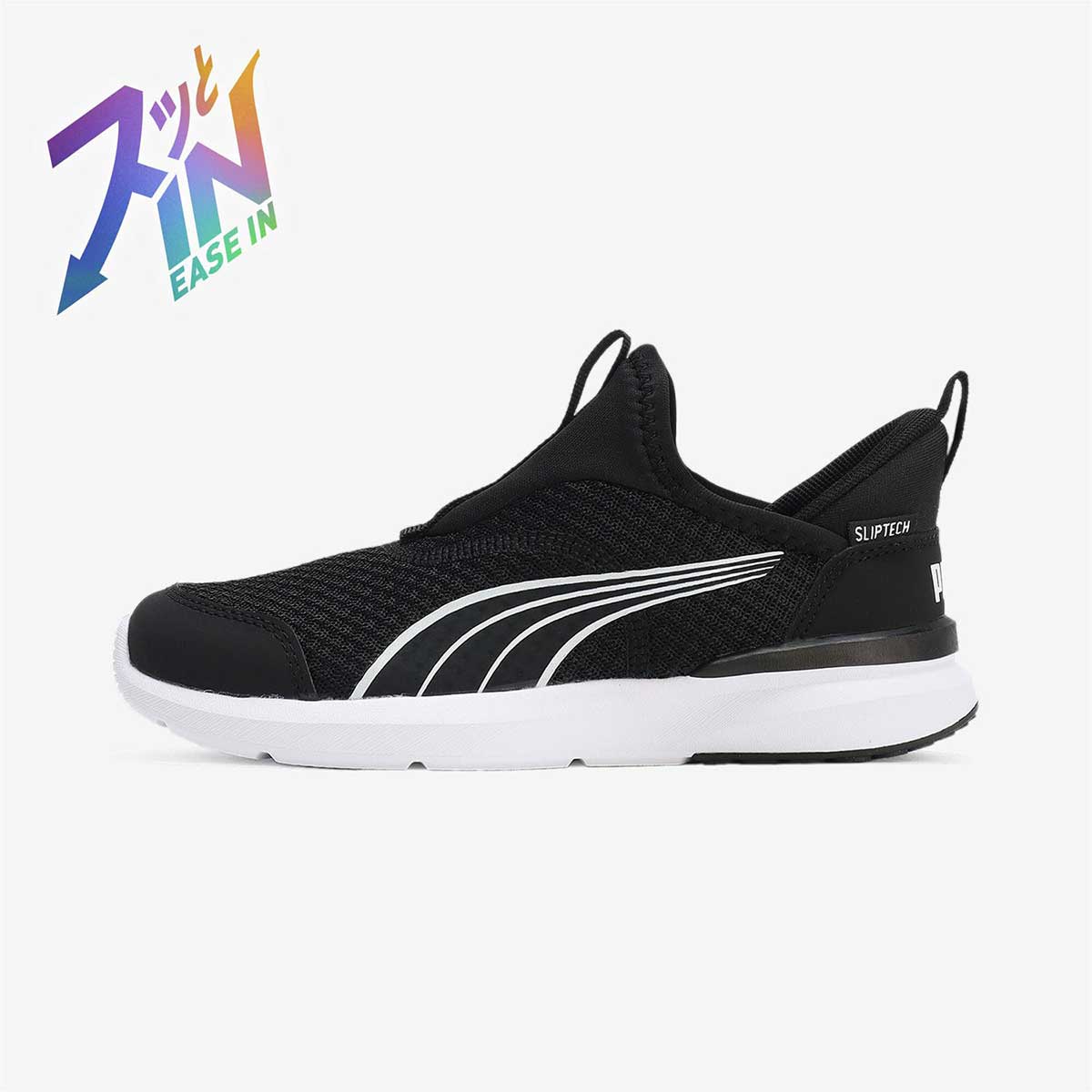 キッズスニーカーの中でもプーマらしいパフォーマンスニーズに特化してデザインを投入し、アッパーはスリップオン仕様で、耐久性と足運びをサポートするトラクションに注目。PUMAの新しいSLIPTECHテクノロジーにより、手を使わずにシューズを脱ぎ履きできる。Kruz Profoam EASE INは、ヒール部の構造に工夫をしユニークなステップインスタイルを演出します。