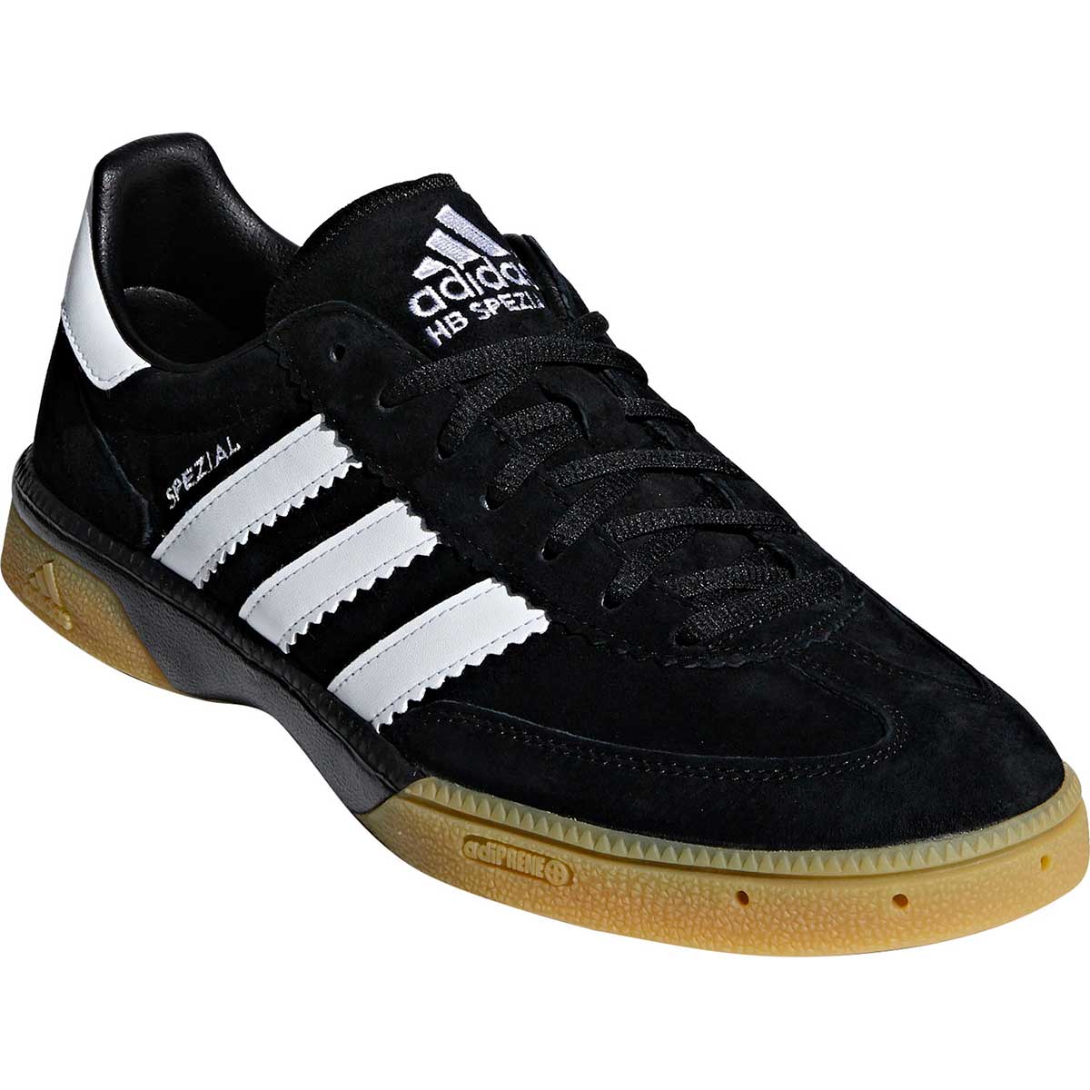 レギュラーフィット、シューレースクロージャー、スエードアッパー/合成繊維(EVA)シュータン、前足部にadiPRENE+クッショニング、クラシックなルックスのハンドボールシューズ、成型加工の合成繊維(EVA)ミッドソール/安定性を発揮するトルションシステム、adiPRENE ヒールクッショニング/ノンマーキングアウトソール
