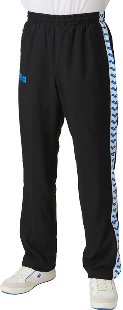 チーム用の布帛ロングパンツです。フィットシルエットですっきり見えるパターンを採用しています。アリーナの定番ライン使用デザインです。