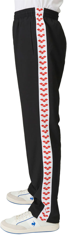 チーム用の布帛ロングパンツです。フィットシルエットですっきり見えるパターンを採用しています。アリーナの定番ライン使用デザインです。