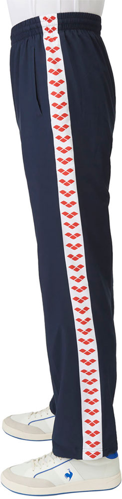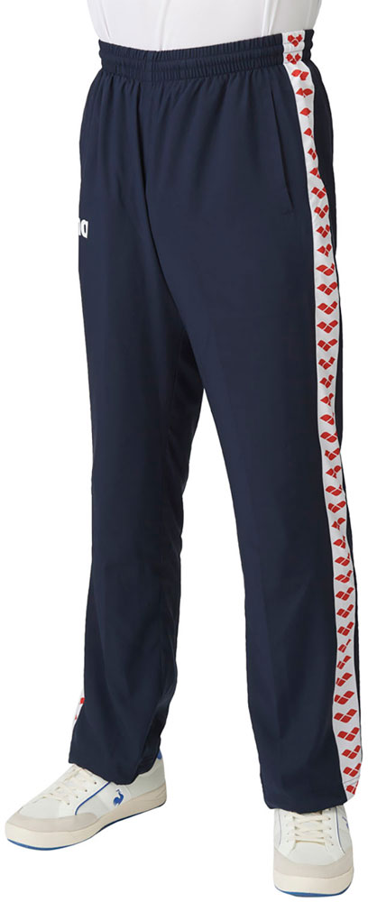 チーム用の布帛ロングパンツです。フィットシルエットですっきり見えるパターンを採用しています。アリーナの定番ライン使用デザインです。