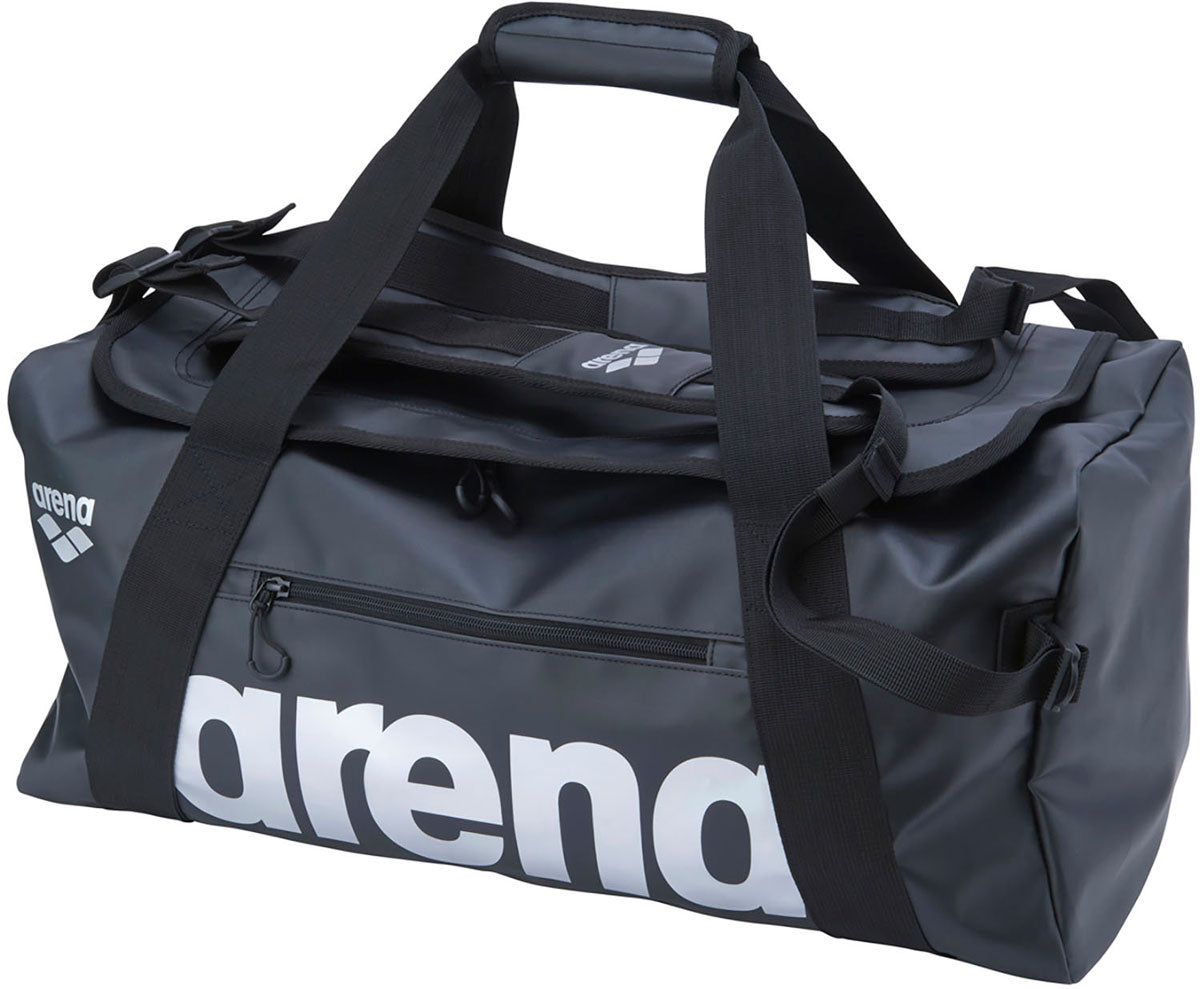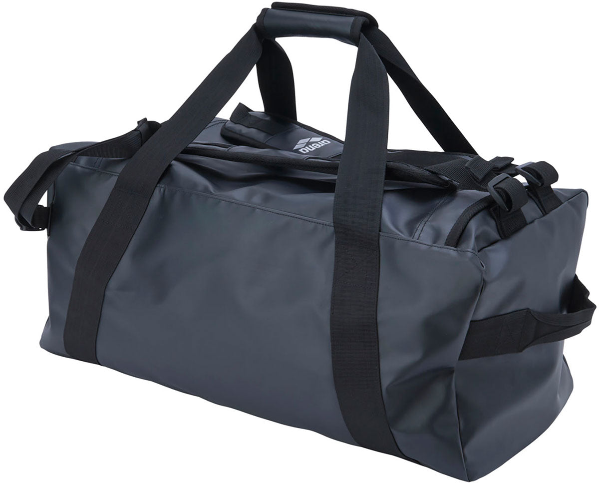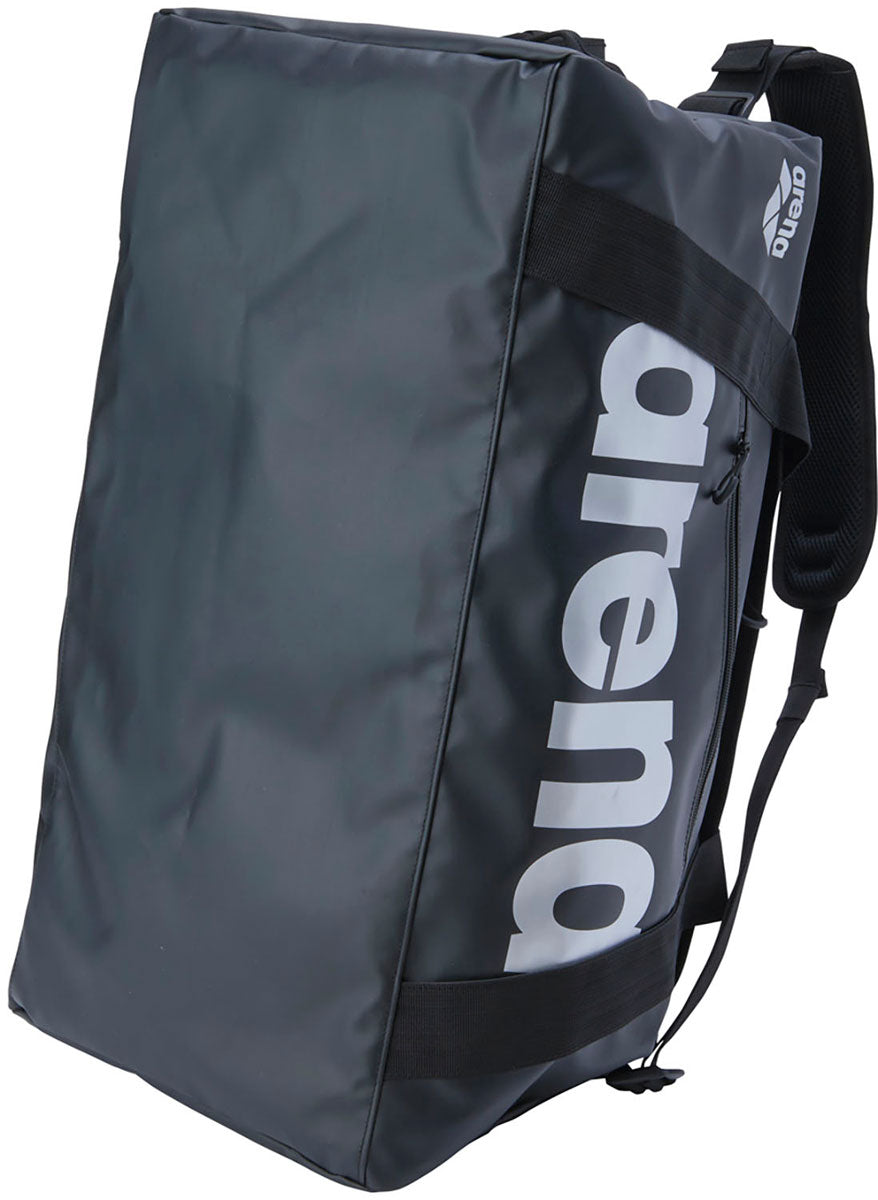 プールサイドでも使用しやすいはっ水素材を使用した2WAYボストンバッグ。荷物の重さや使用用途によって使い分けできる手持ちのボストンバッグタイプと持ち運びしやすいバックパックタイプの2WAY仕様。またファスナーが大きく開くことで物の出し入れがしやすく、約50Lの荷物を収納できる大容量。パスケースや小物等の収納に便利な前ポケット付き。合宿に行く学生スイマーや遠征に行くマスターズスイマーにおススメ。