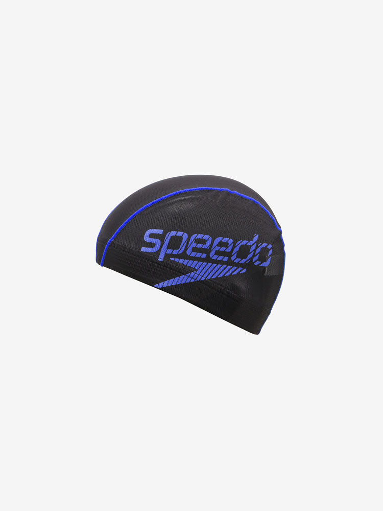 水中に映えるSpeedoのビッグロゴを大胆にプリントしています。