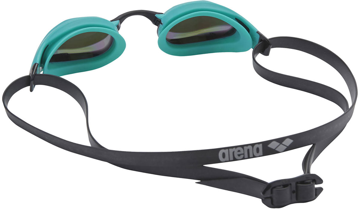 公式大会に出場するために必要なWORLD AQUATICS(世界水泳連盟)承認モデル。1/100秒を争うトップスイマーに向けて開発された、アリーナ最高峰の競泳用スイミングゴーグル。世界中の多くのトップスイマーが国際大会で使用している「cobra」シリーズ。クッションを搭載することにより飛び込み時などの衝撃によるズレを軽減。アイカップ上部の厚みを低く、下部にフィンの形状を搭載することで、スムーズな水の流れを実現。アイカップ上部のレンズ面を目に近づけることにより、前方方向の視野を広く確保。レンズとバックルの接合部分がしなり、顔とゴーグルの間を狭くすることにより、抵抗の原因となるストラップのバタつきを防ぐ。5サイズの鼻ベルトが同梱されており、顔の形に合わせた調整が可能。ミラー加工レンズ。