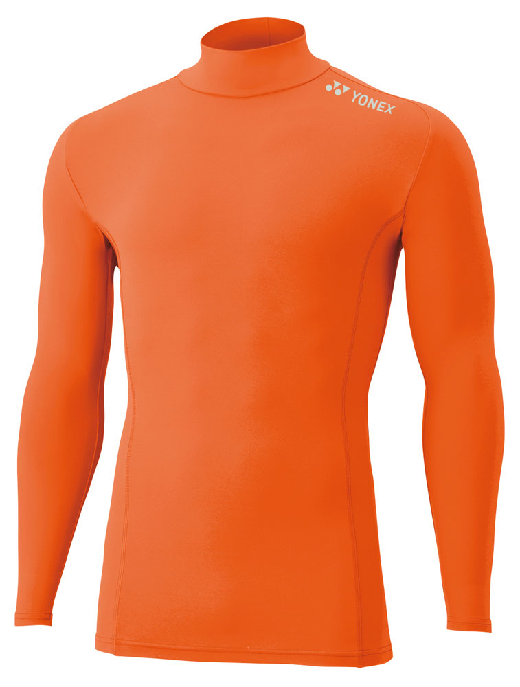 【商品名】ジュニア ハイネック長袖シャツ【カラー】005オレンジ【サイズ】サイズ:J130・J140・J150【素材、仕様】●素材:ポリエステル82%、ポリウレタン18% ●仕様:ストレッチ【特徴】●日本バドミントン協会審査合格品