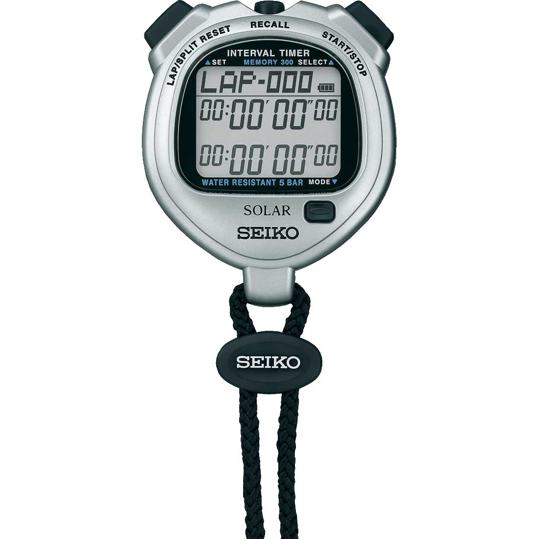 電地交換の必要がないソーラー充電ストップウォッチ。フル充電後、光の当たらない状態で約24ヵ月バッテリー持続。大容量300メモリー搭載。